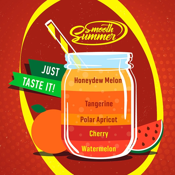 Příchuť Big Mouth Smooth Summer - Mandarinka a žlutý meloun (Watermelon, Cherry, Polar Apricot, Tangerine, Honeydew Melon) - 10ml